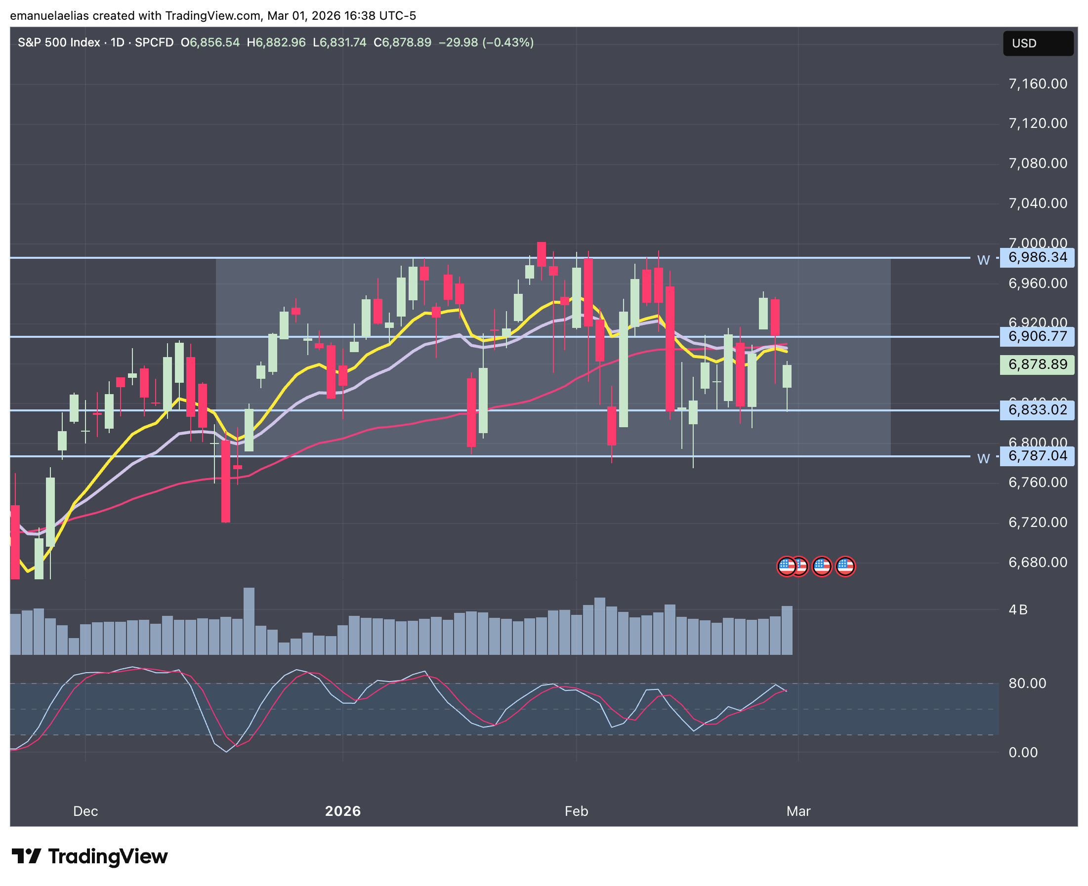 If we lose 6,883, then 6,787 is the next level down. And if 6,787 breaks and we can’t reclaim it, that’s when it starts to feel less like boring range stuff and more like the market might actually slip into a real decline.